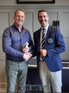 [image: image.png] Pictured above is Kevin McKenna receiving 2nd Prize in the Final of the P.G.A. of a Gold Golf Watch from Philip Ring Chair of the Southern Branch of the P.G.A. at a Dinner in the Druids Heath Golf Club.