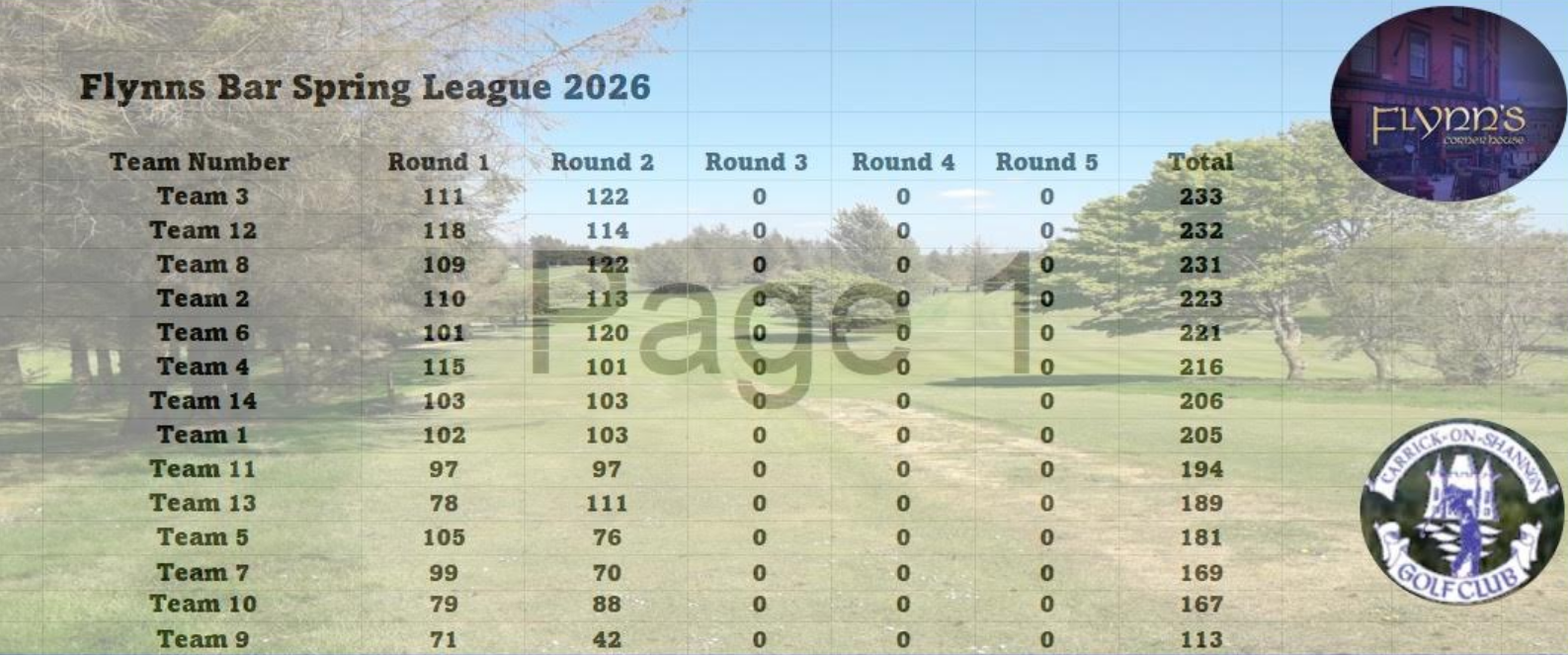 Flynn’s Bar Sponsored Spring League Round 2 Results.