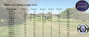 Flynn’s Bar Sponsored Spring League Round 3 Results.